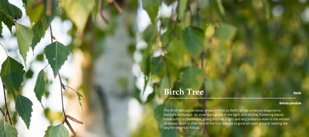 In Irish heritage, the Birch holds deep symbolic meaning. It has long been associated with renewal, purification, and the clearing away of the old to make space for new beginnings. In Celtic mythology, Birch marked the start of the Ogham alphabet with the letter Beith, representing fresh starts and the turning of the seasons.