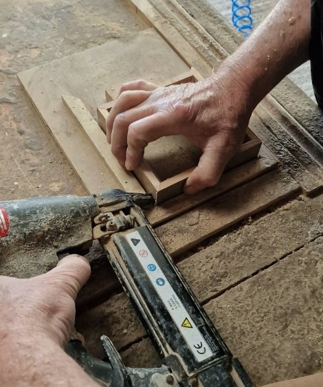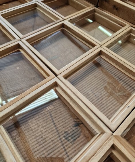 Natural variations are part of the reclaimed timber. Differences in grain, tone and surface marks tell the story of the original floor and make each frame one of a kind.