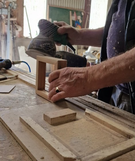 Each frame is handcrafted from reclaimed maple boards taken from the original dance floor of the Rainbow Ballroom of Romance in Glenfarne, Co. Leitrim. The face is lightly sanded to reveal the grain, while the sides retain authentic scuffs and polish from decades of dancing.