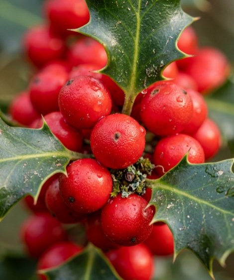 Holly has long been seen as a tree of protection, planted near homes to guard against misfortune. Its evergreen leaves and bright berries symbolise resilience and renewal.