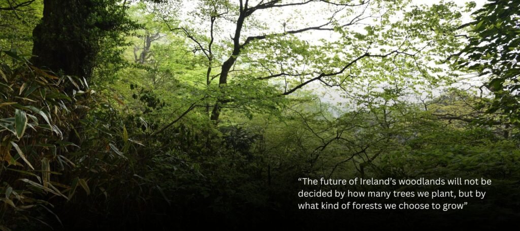Forests dominated by a single non-native species often lack undergrowth and habitat diversity. Limited light reaches the forest floor, reducing plant growth and restricting insect populations. Deadwood is frequently removed, removing essential habitat for fungi, beetles and birds. While these systems may serve commercial purposes, they rarely generate the same biodiversity as native Irish woodlands. Complexity is reduced, and resilience weakens.