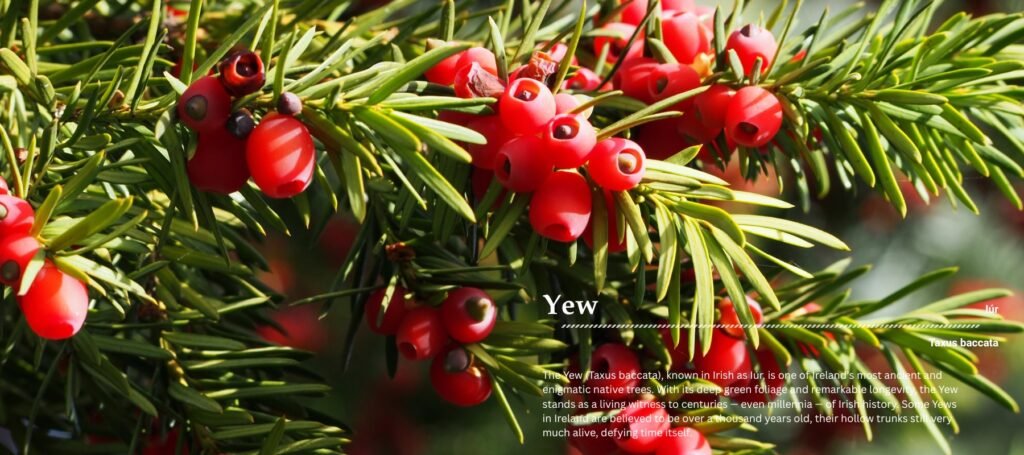 In Irish mythology and Celtic symbolism, the Yew was deeply connected to the cycles of life, death, and renewal. It was believed to stand at the threshold between worlds, a tree that held wisdom of both the living and the dead. Many ancient Yews grow in churchyards, older than the buildings beside them, representing continuity across ages and beliefs.
